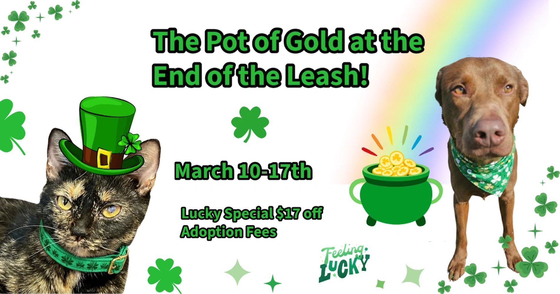 Enjoy $17 off your adoption fee if you adoption by St. Patrick's Day!!!